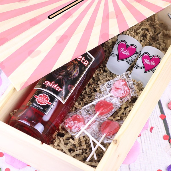 Caja Regalo para Parejas Licor + Vasos Chupito