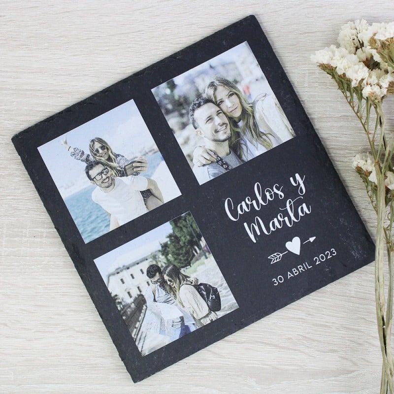 Piedra Pizarra Personalizada con 3 fotos para…